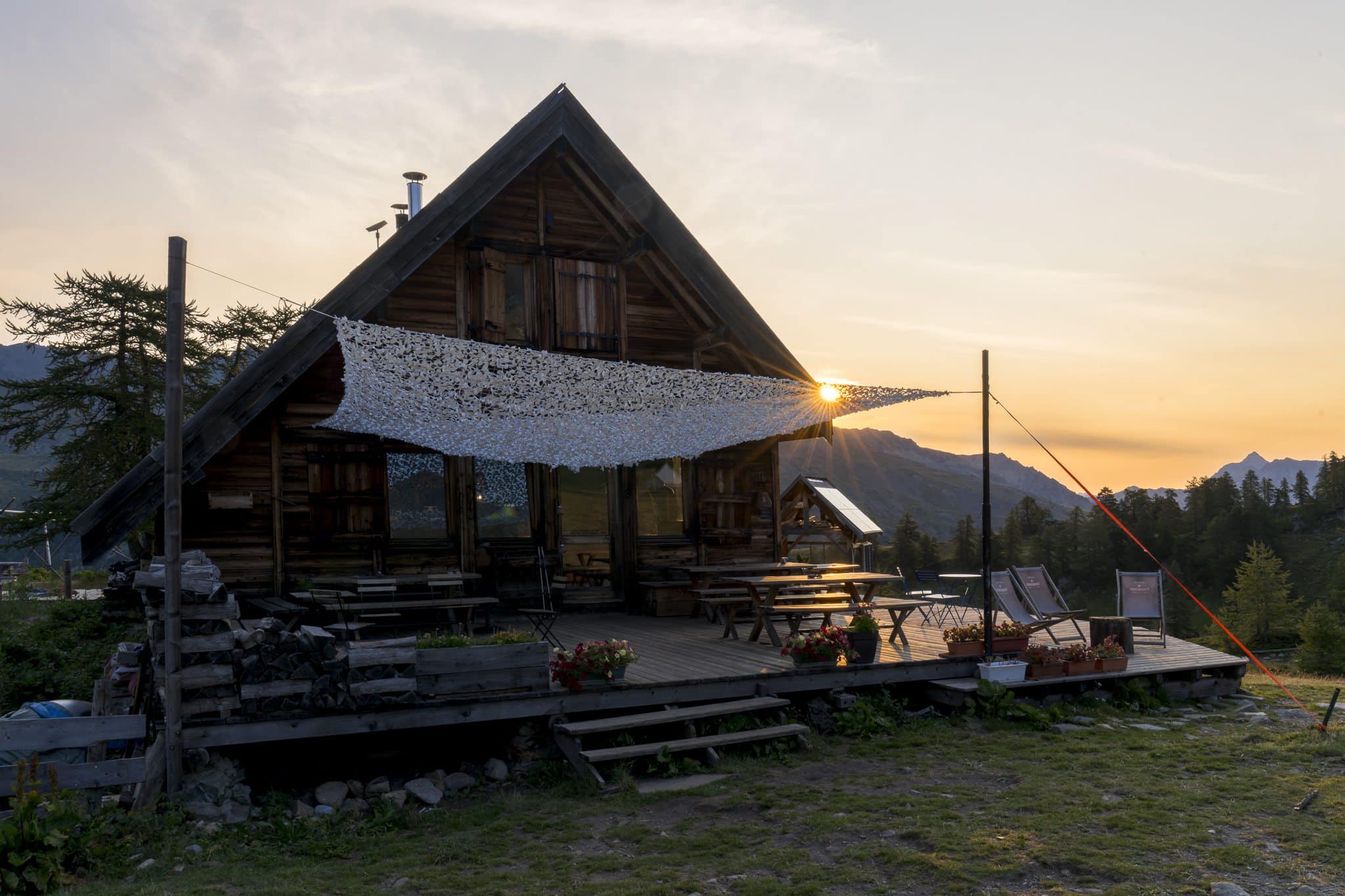 Dans la descente, nous rejoignons le ruisseau du Raisin puis le refuge du Chardonnet où je commande une pinte de limonade et un crumble pour la gourmandise. Le refuge est complet. Beaucoup de familles sont ici pour partager l'expérience de la montagne. C'est chouette même si c'est assez bruyant, notamment lors du diner. Le dîner est super bon au passage. Le soir, après le dîner, je pars m'aérer un peu et profite des derniers rayons de soleil sur la crête du Raisin et les sommets voisins.