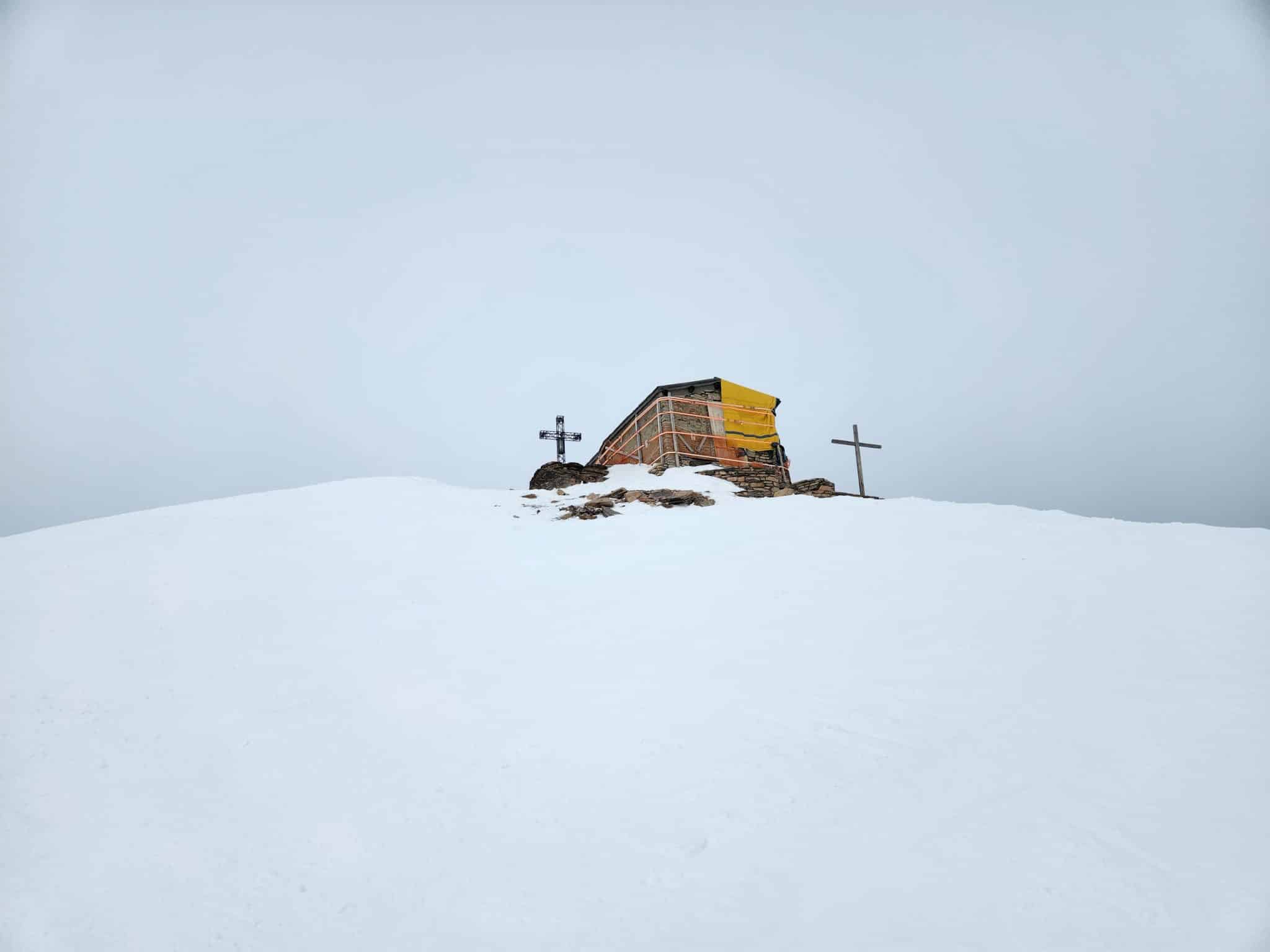Le début de cette vallée est marqué par une petite chapelle (Chapelle Saint Michel) posée au milieu de nulle part, c’est magnifique. Après une traversée, nous rejoignons le chemin d’été. Ici la neige s’arrête, à environ 1800 m d’altitude. Nous marchons les skis sur le sac à dos pendant environ 15 minutes, le temps de rejoindre Névache.