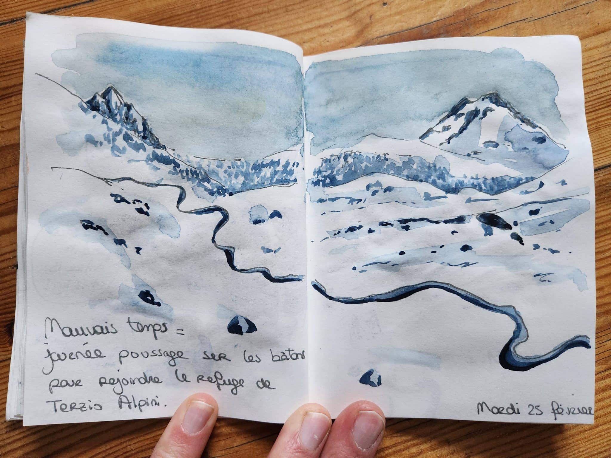 + 100 m / – 800 m 8 km 2h30 Refuge Terzio AlpiniLa météo aujourd’hui est mauvaise, on le savait. Finalement au réveil ce n’est pas si pire. On traine dans le refuge, on prend le petit déjeuner le plus tard possible. Julie et son groupe sont partis assez tôt pour tenter le Mont Thabor. Nous, nous avons opté pour un petit couloir en aller-retour, sans aucune prétention.