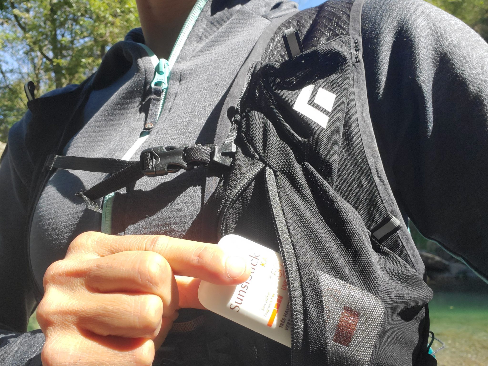 Le panneau dorsal BD Dry™ anti-transpiration est appréciable, car il apporte un confort du dos qui n’est pas toujours acquis avec les sacs de trail. Ici, le rembourrage est suffisamment épais pour ne pas qu’on soit gêné par ce qui est dans le sac, tout en étant léger et respirant grâce à un rembourrage ajouré. J’ai utilisé le sac Distance 15 par des journées bien chaudes, dans les Calanques et à Minorque, et je n’ai jamais eu le dos totalement humide de transpiration.