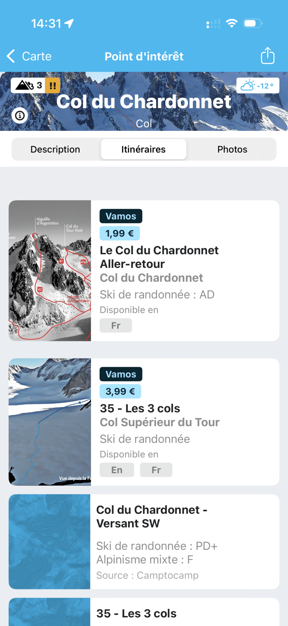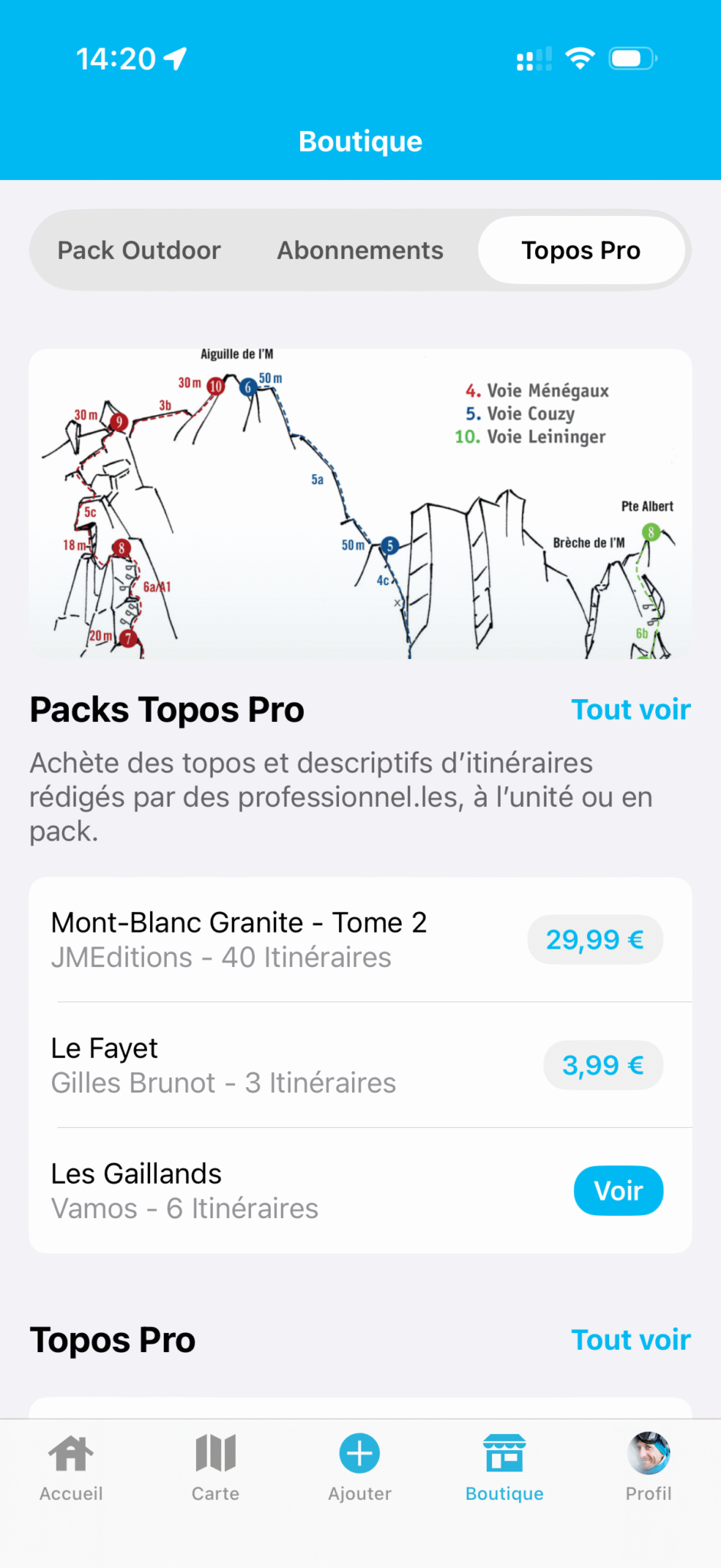 Grâce à la communauté montagnarde de Whympr, mais aussi grâce aux liens étroits entre l’application et les sites web CampToCamp et Skitour, et Gulliver pour l'Italie, on a accès à de très nombreux topos. Ce qui, entre ces trois énormes communautés plus les topos pro, en fait une des bases de données des plus fournies dans le domaine !