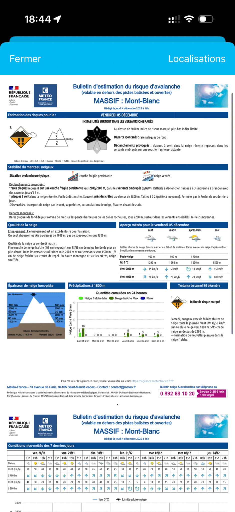 Aussi, le BERA du secteur de chaque itinéraire est disponible en un clic, pour tous les secteurs de montagne de France, Suisse, Italie et Autriche ! Les pays du nord de l'Europe ainsi que les US et le Canada devraient arriver bientôt.